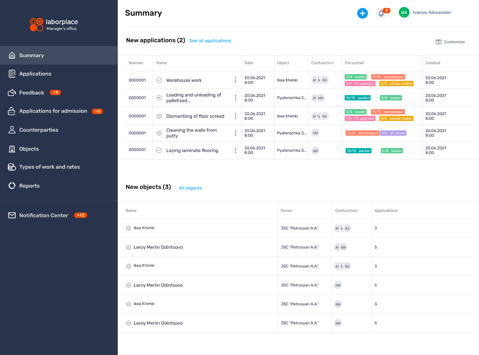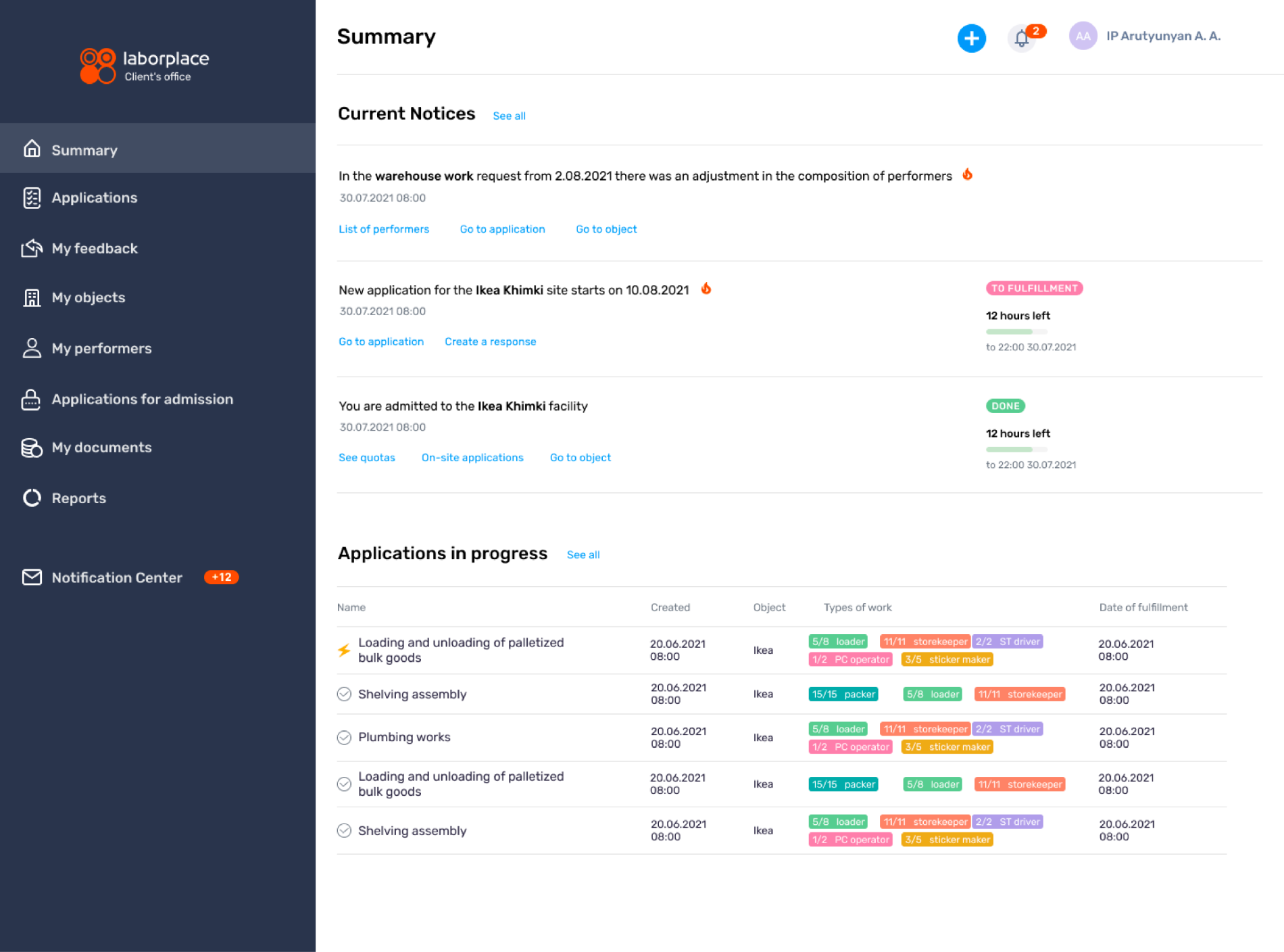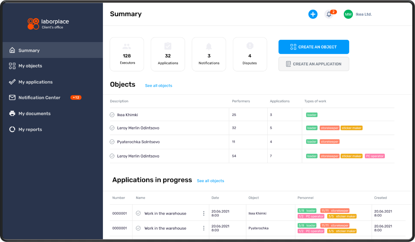 If the object is a permanent job, then requests are daily tasks. Applications can be viewed in the corresponding section of the account in the form of a list or by object. On the application page you can monitor recruitment and keep a report.