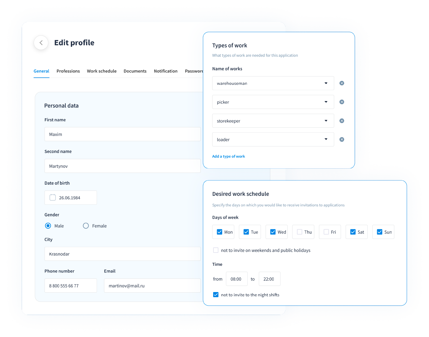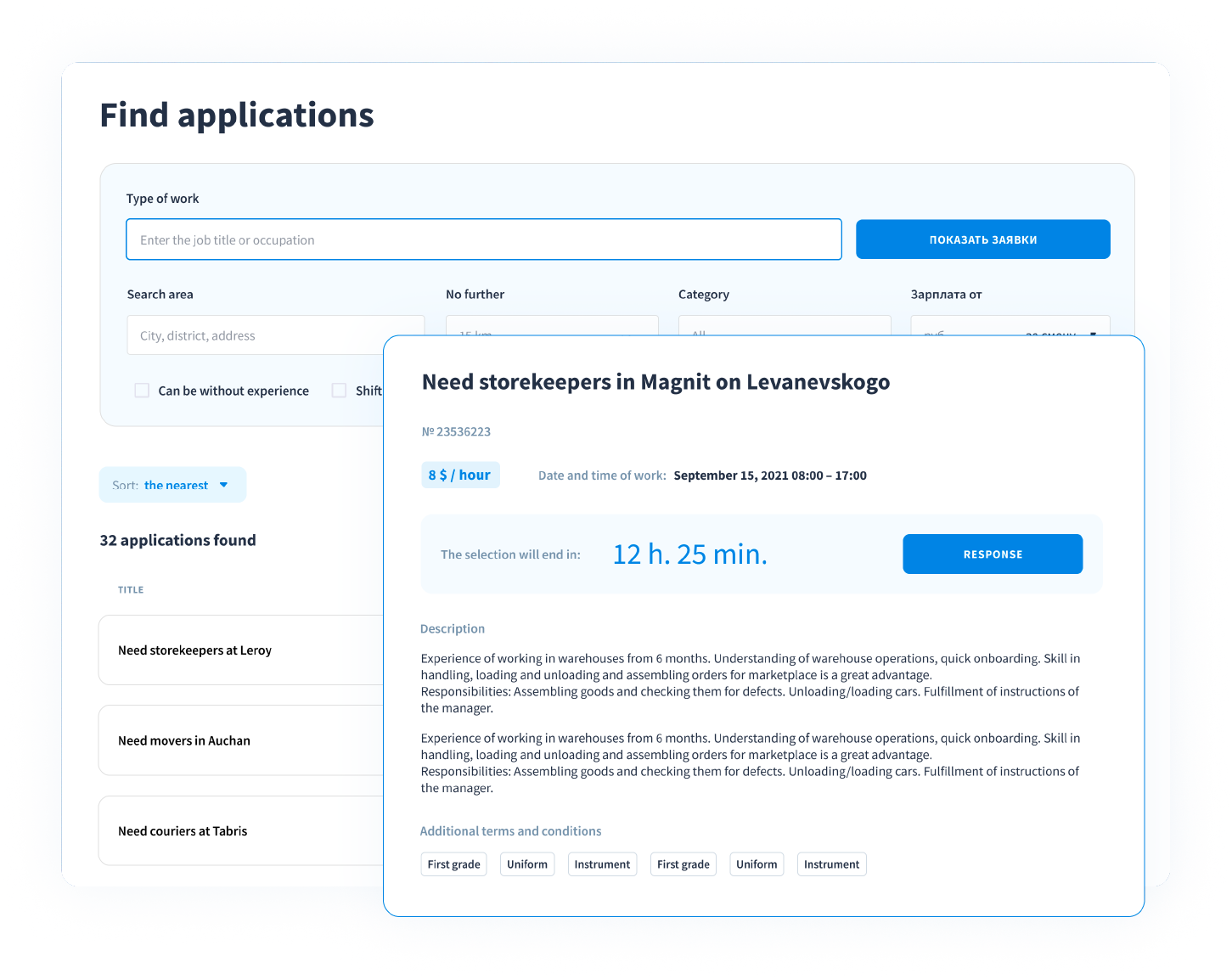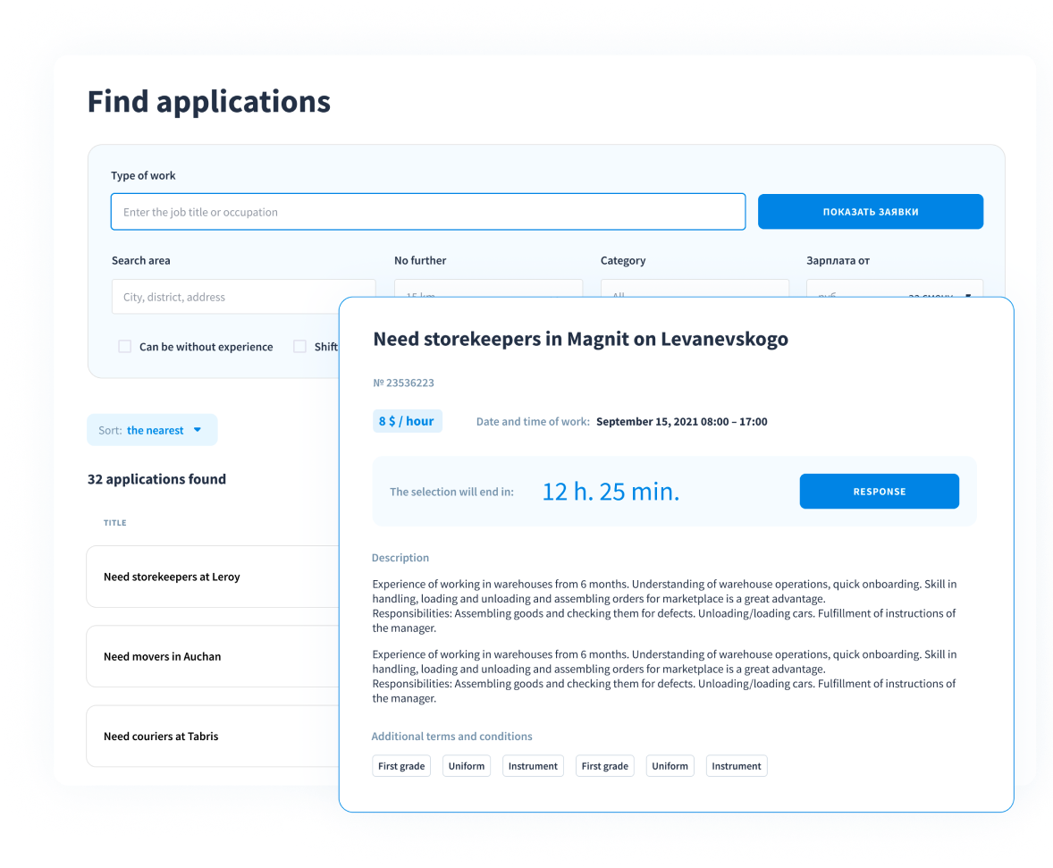 To start hiring people, the client needs to create an object. An object is a place of work, for example, an enterprise, a store or a warehouse.
